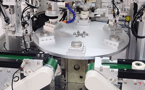 此設備最大優勢在與能和產線前后工位銜接實現無人化自動生產。設備針對麥拉片貼膜研發制造,自動上料、清潔、校正、貼膜、保壓、自動下料為一體,多工位轉盤式設計可以最大化兼容各工位同時作業,避免單工位機型所不能滿足的產品工藝,最大